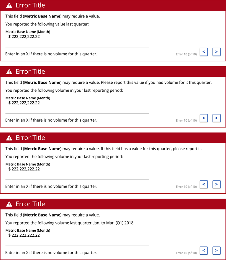 They would then be forced to take a screenshot or print out a copy of the errors listed on this error screen before heading back to the original screen where the errors initially occurred. This left users frustrated, confused and with no notion of what they were trying to fix.