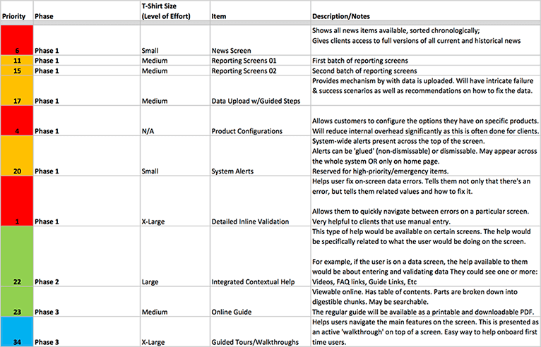 Additional outcomes of the discovery period were a high-level timeline, phased development plans and a feature roadmap. Detailed versions of each resulted in the allocation of additional time to the schedule, phases for global expansion, and a budget increase of several million dollars.